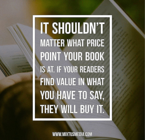 A few weeks ago I posted the following picture on Twitter with the caption: People buy what they VALUE. Create quality books, engaging social media interactions and blog posts. They all add value!