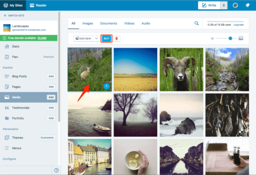 Now you can edit media files as you add them to your post or directly from the media section. To modify media information like the title or caption, select the items you would like to edit, then click Edit.